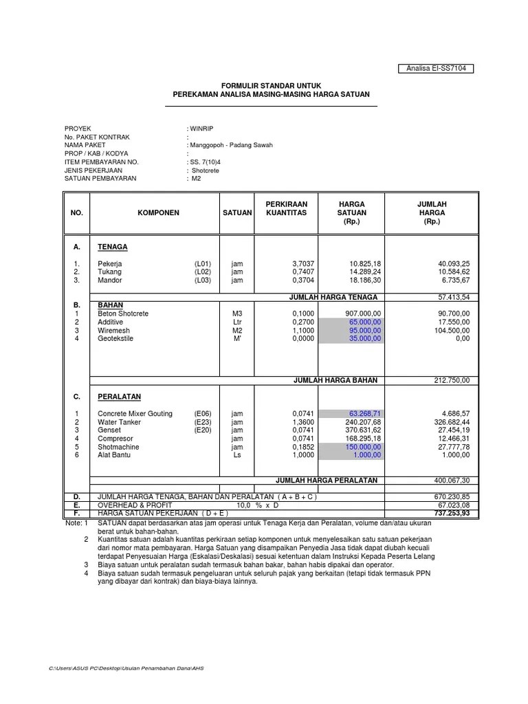 Pedoman analisa harga satuan pekerjaan. Analisis biaya dan tata laksana pekerjaan grouting dengan perbandingan grouting tirai tipe jet dan groutingtirai tipe permeation pada proyek pembangunan waduk: Dari trotoar ke interstate, dan segala sesuatu di antaranya, grouting polyurethane adalah ekonomis, cepat dan efektif untuk memperbaiki permukiman dan ketidakstabilan. Bahkan, injeksi beton seharusnya menjadi perawatan untuk bangunan anda yang terbuat dari bahan beton. pekerjaan persiapan pembuatan 1 m2 pagar sementara dari kayu pembuatan 1 m2 pagar sementara dari seng gelombang pembuatan 1 m2 pagar sementara dari kawat duri pengukuran dan pemasangan 1 m2 bouwplank. / felix hidayat, st., mt. Bagaimana pekerjaan injeksi polyurethane pu ? Standart yang bisa digunakan secara nasional indonesia. Jika anda kesulitan mendownload file diatas, anda dapat mencoba file premium yang kami siapkan untuk anda. Prisma sarana jaya utama (021) 8448621, fax : analisa harga satuan pekerjaan bangunan berdasarkan peraturan menteri pekerjaan umum dan perumahan rakyat (pupr) nomor 28/prt/m/2016 tentang analisis harga satuan pekerjaan bidang pekerjaan umum. Harga sika grout 215, fungsi sika grout dan cara penggunaannya. View analisa 2020.xls from me 101 at national institute of technology malang.